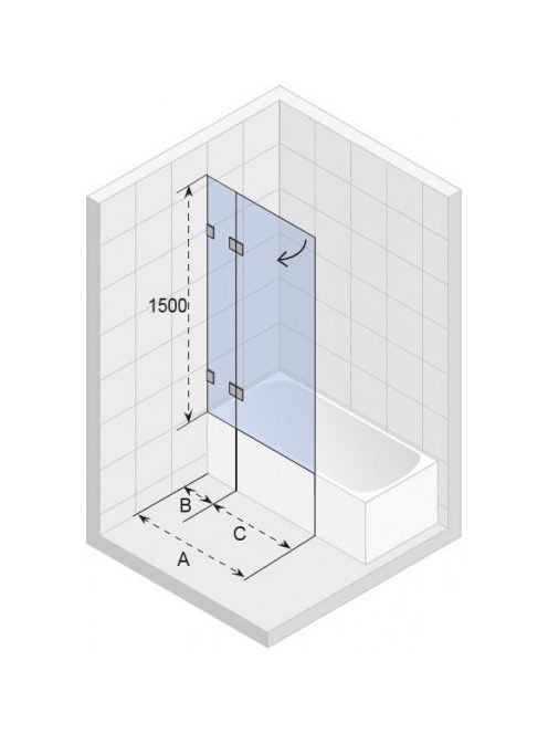 Riho Scandic NXT X109V kádparaván átlátszó üveg 95X150 cm krómozott zsanérokkal jobbos kivitel G001156120