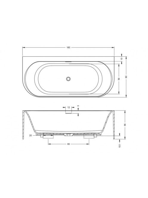 Riho Valor SOLID SURFACE falhoz illeszthető kád 180x80 cm, mRiho Valor SOLID SURFACE falhoz illeszthető kád 180x80 cm, m