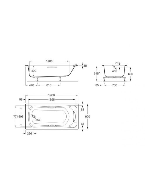 Roca BeCool 1900x900 akrli kád A248014001 (7248014001) - Für