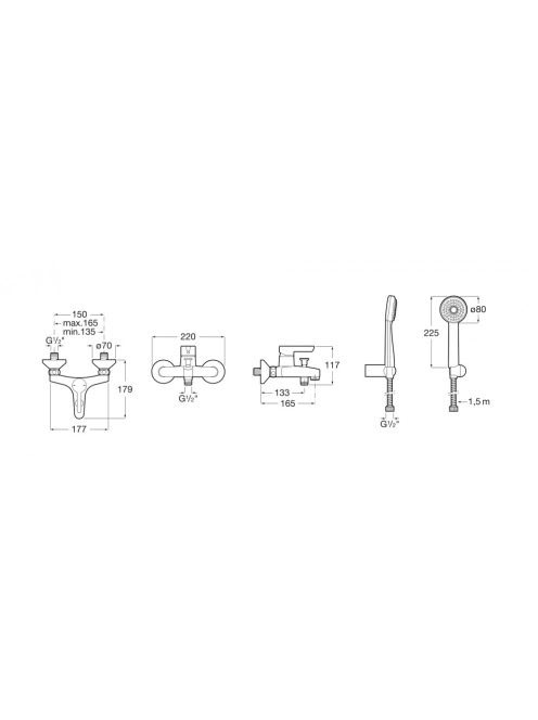 Roca Saona egykaros fali kádtöltő csaptelep zuhanyszettel Kr