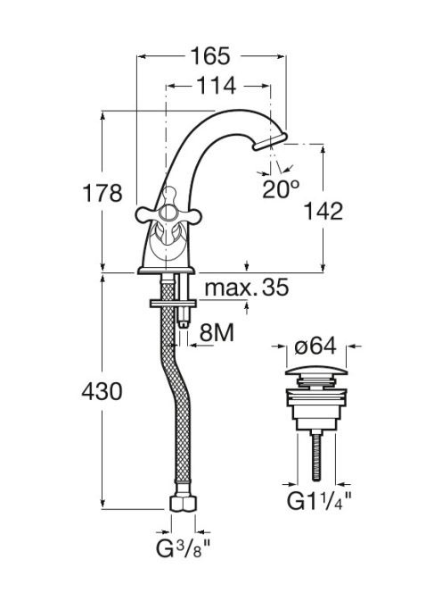 Roca Carmen mosdó csaptelep Click-Clack lefolyóval, fényes k