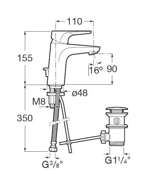 Roca Atlas egykaros csaptelep, automata leeresztővel, króm ARoca Atlas egykaros csaptelep, automata leeresztővel, króm A
