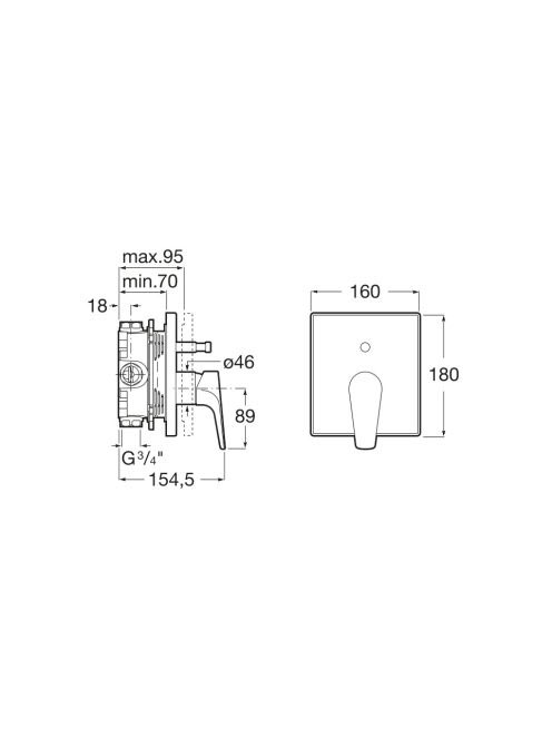 Roca Atlas Rejtett keverőcsaptelep kádhoz és zuhanyhoz, króm
