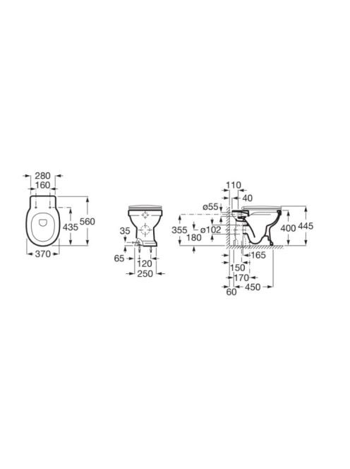 Roca Carmen Rimless WC csésze, vario kifolyással, fekete A34