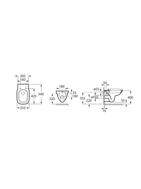 Roca Debba Square Rimless fali kerámia WC csésze mélyöblítés