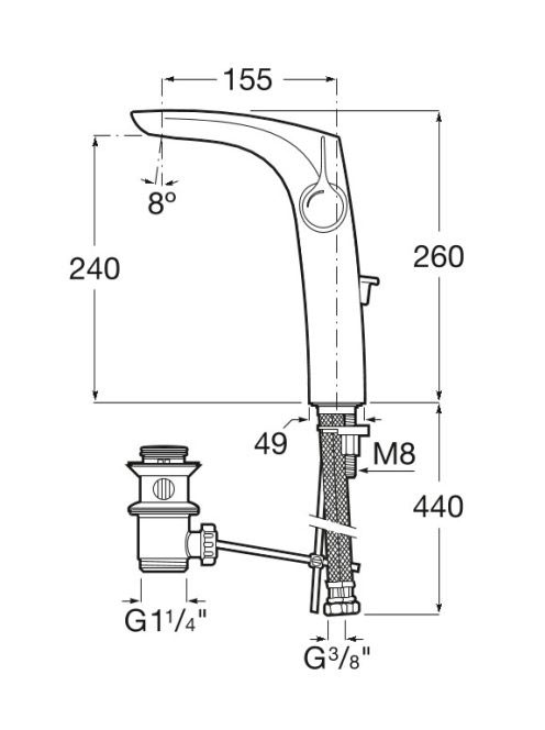Roca Insignia magas mosdócsaptelep oldalsó fogantyúval, leeresztővel, Cold Start, króm A5A343AC00