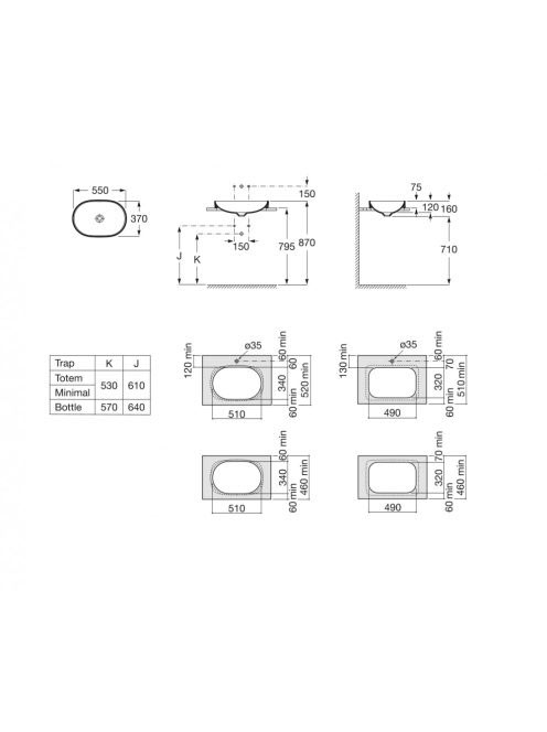 Roca Inspira Round pultba építhető Fineceramic mosdó 55x37 ORoca Inspira Round pultba építhető Fineceramic mosdó 55x37 O