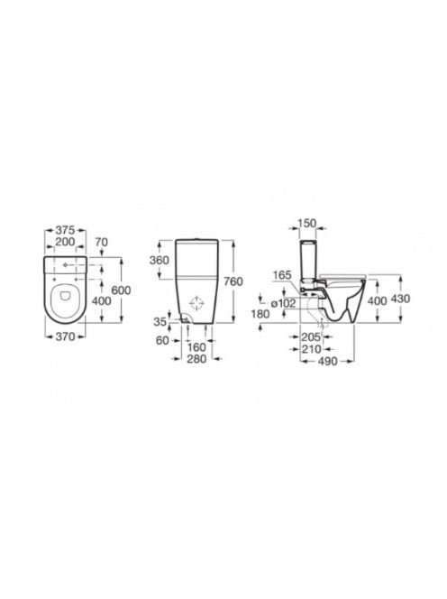 Roca Inspira Rimless falra tolható kompakt WC csésze 60x37,5