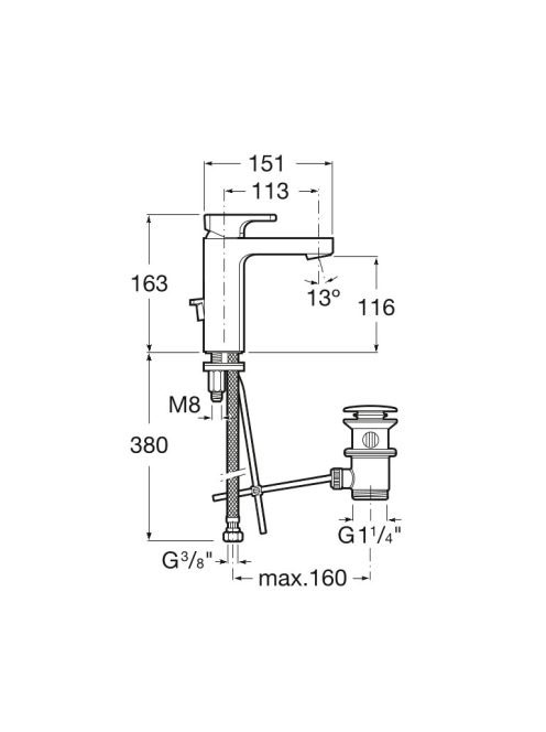 Roca L90 egykaros csaptelep automata leeresztővel és flexibi