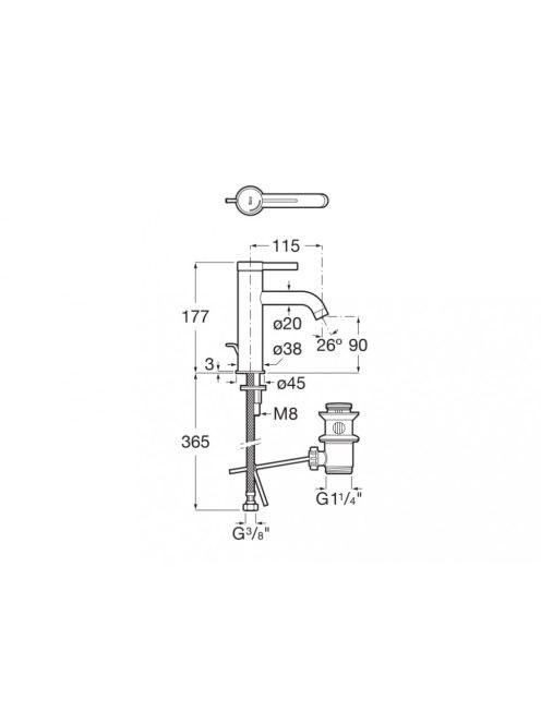 Roca Ona egykaros mosdócsaptelep leeresztővel, Cold Start, m