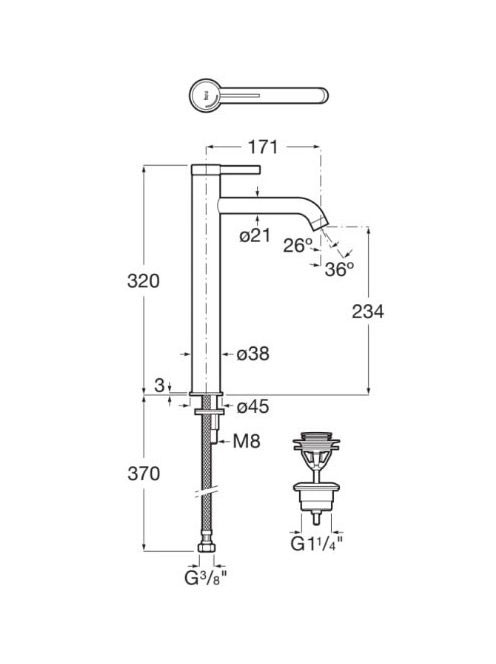 Roca Ona egykaros magas csaptelep, Click-Clack lefolyóval, k