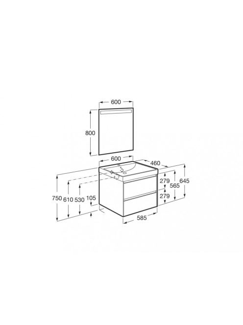 Roca Ona Pack 2 fiókos alsószekrény mosdóval 60x46 tükör LED
