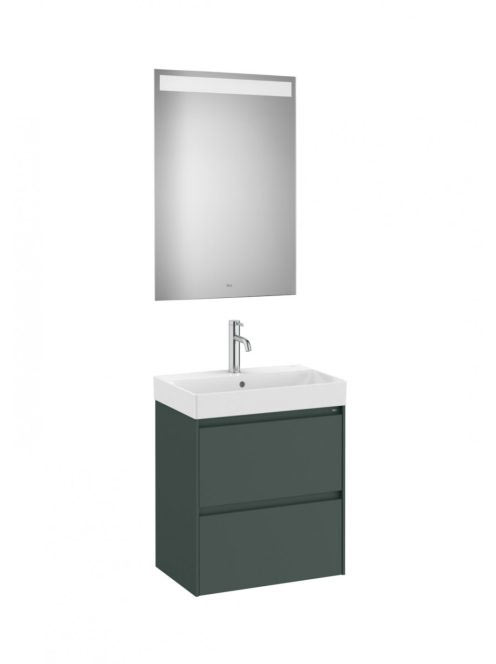 Roca Ona Pack 2 fiókos mosdószekrény mosdóval 55x36 tükör LED világítással Matt Zöld A851699513