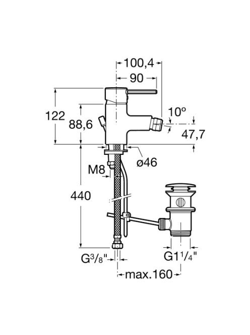 Roca Targa bidé csaptelep leeresztővel, króm A5A6060C00 - Fü