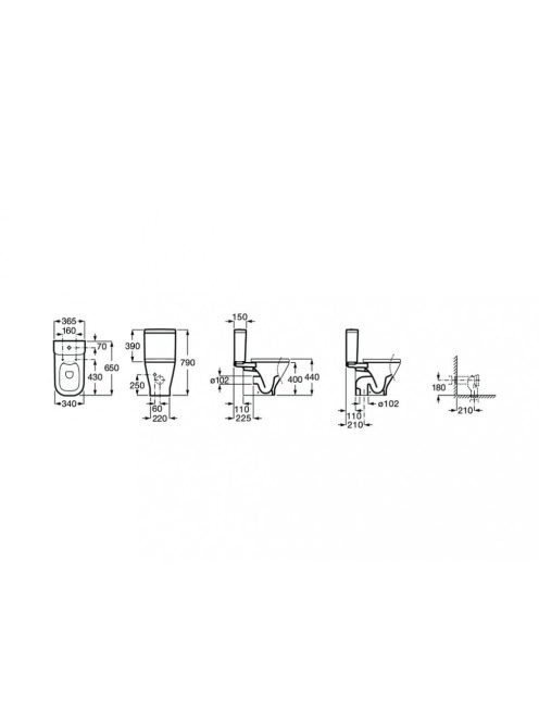Roca The Gap perem nélküli monoblokkos WC csésze, fehér A342