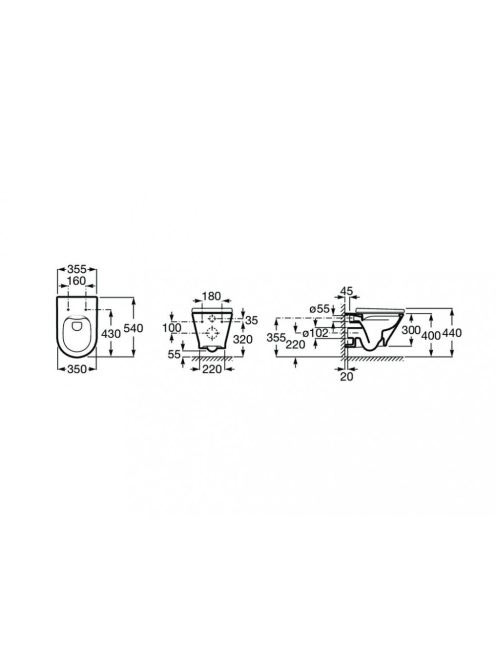 Roca The Gap Round perem nélküli fali WC csésze, rejtett rög