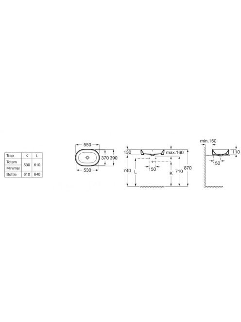 Roca The Gap Round pultra tehető íves mosdótál 55x39 cm, csa