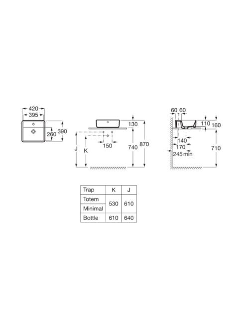 Roca The Gap Square pultra ültethető mosdó 42x39 túlfolyóval A3270MM000