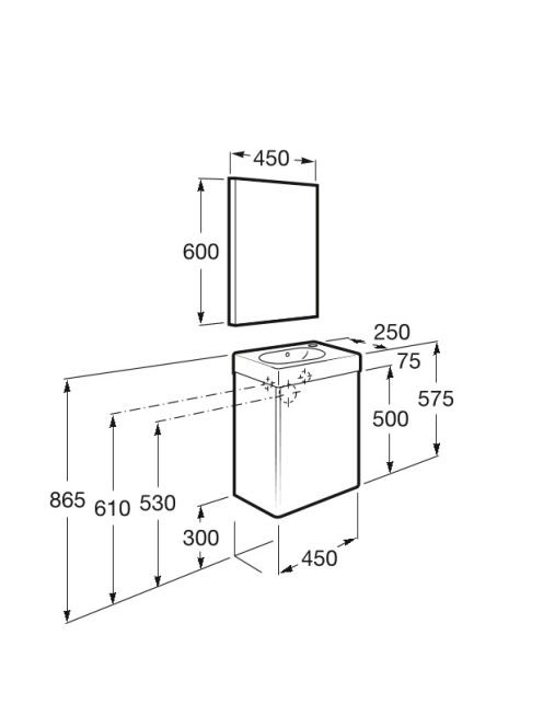 Roca Unik Pack Mini mosdószekrény kézmosóval és tükörrel Are
