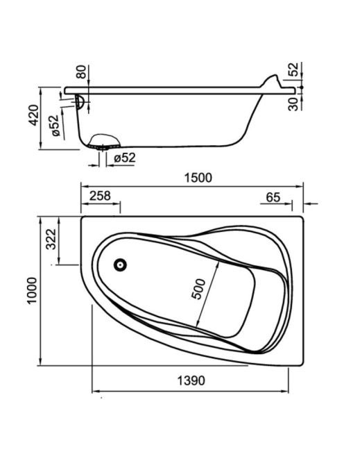 Roca Waitara 150x100 aszimmetrikus akril sarokkád (bal) A248