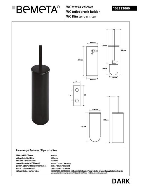 Bemeta Dark álló vagy falra szerelhető WC-kefe tartó, fekete