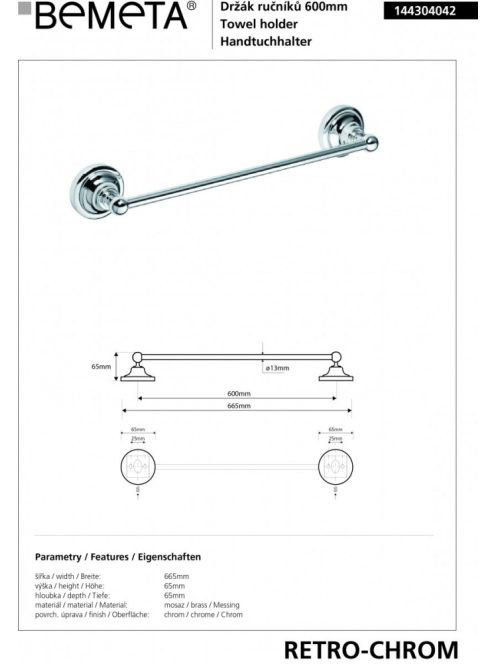 Bemeta Retro Törölköző tartó 66,5 cm, króm 144304042 - Fürdő