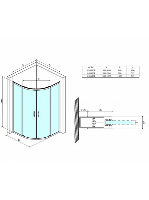 Gelco Sigma Simply íves zuhanykabin transzparent üveggel 100