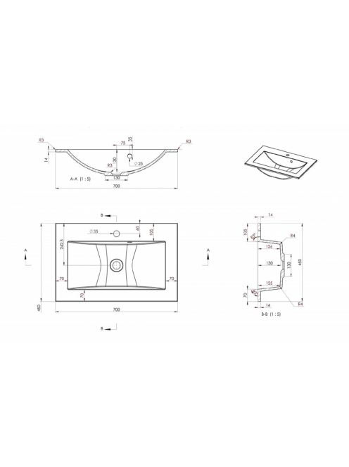 Sapho Yukon öntött márvány mosdó 70x45 cm, fehér YU070 - Für
