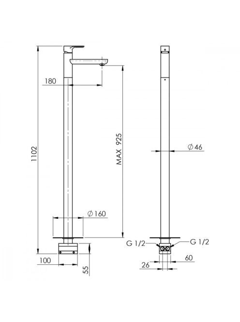 Sapho Pax szabadonálló mosdó csaptelep, Click-Clack leereszt