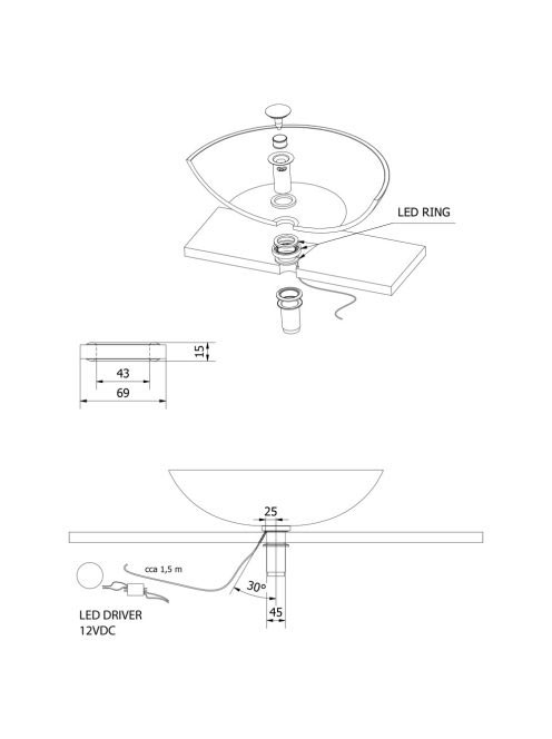 Sapho Alátét mosdó és mosdótartó pult közé LED világítással