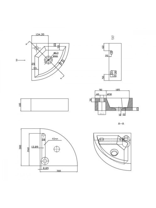 Sapho Blok sarok kőmosdó 30x30cm, fekete antracit 2401-30 -