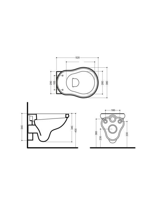 Sapho Kerasan Retro fali WC csésze 52x38 cm 101501 - Fürdősz