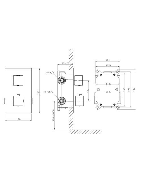 Sapho Latus falba építhető 3 irányú termosztátos zuhany csaptelep, zuhanyszett nélkül, króm 1102-63