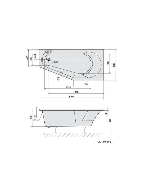 Polysan Tigra aszimmetrikus akril kád 170x80 cm, jobbos 9061