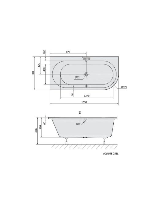 Polysan Astra szimmetrikus akril kád 165x80 cm, balos 33611