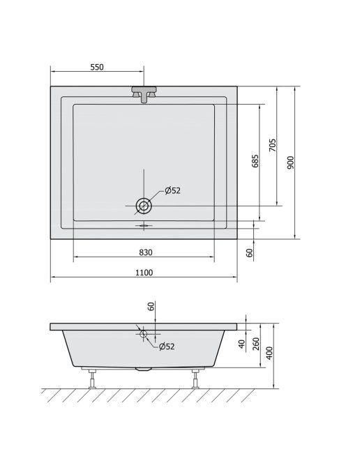Polysan Deep akril szögletes mély zuhanytálca 110x90x26 cm,