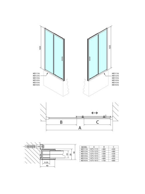 Polysan Deep tolóajtó 110x165 cm transzparent üveg, króm pro