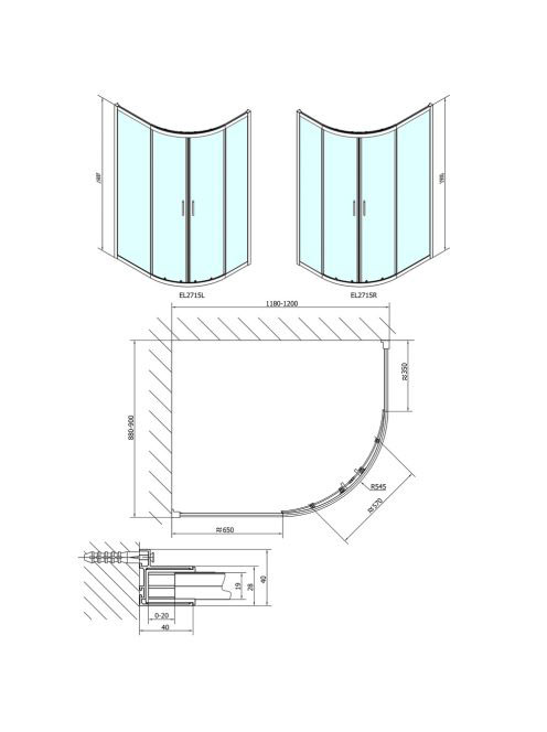 Polysan Easy Line íves zuhanykabin 190x120x90 cm transzparen