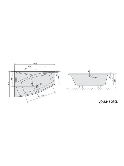 Polysan Evia aszimmetrikus akril kád, 160x100 cm, balos 1161