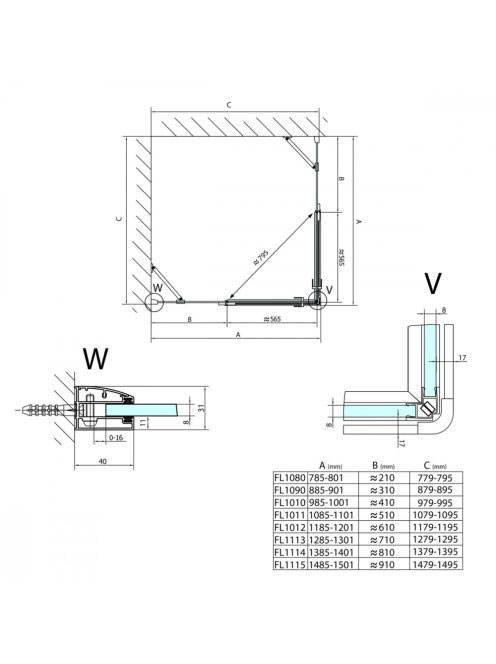 Polysan Fortis Line oldalfalhoz zuhanyajtó 100 cm, jobbos, kPolysan Fortis Line oldalfalhoz zuhanyajtó 100 cm, jobbos, k