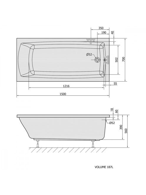 Polysan Lily Slim akril kád 150x70x39 cm, fehér 72273S - Für