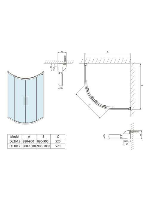 Polysan Lucis Line íves zuhanykabin 100x100 cm, átlátszó üve