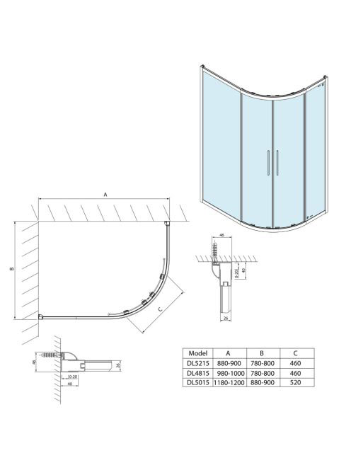 Polysan Lucis Line íves zuhanykabin 120x90 cm, átlátszó üveg