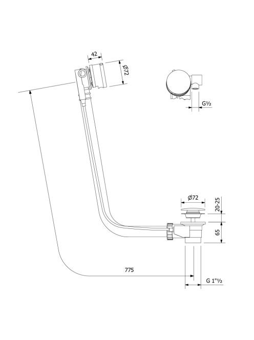 Polysan Marble kád le- és túlfolyó, bovdenes, fehér 11051W -