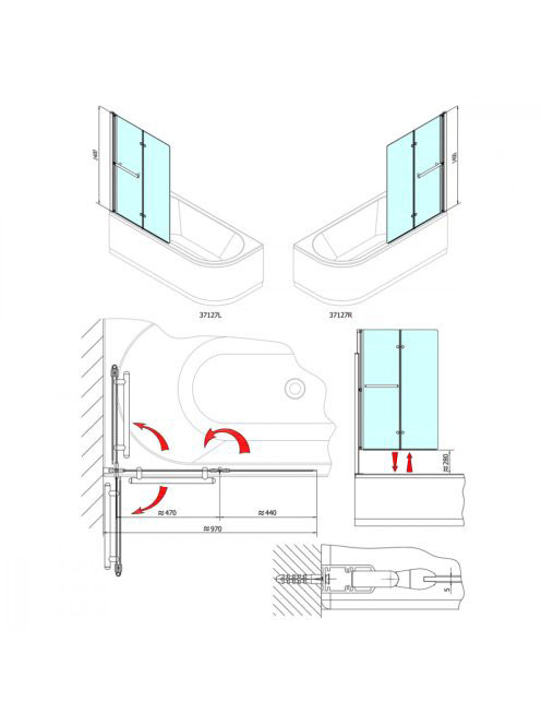 Polysan Odessa teleszkópos kádparaván 97x140 cm, csiszolt al