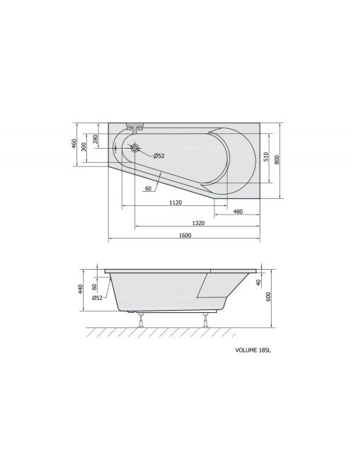 Polysan Projekta aszimmetrikus akril kád 160x80 cm, jobbos 2Polysan Projekta aszimmetrikus akril kád 160x80 cm, jobbos 2