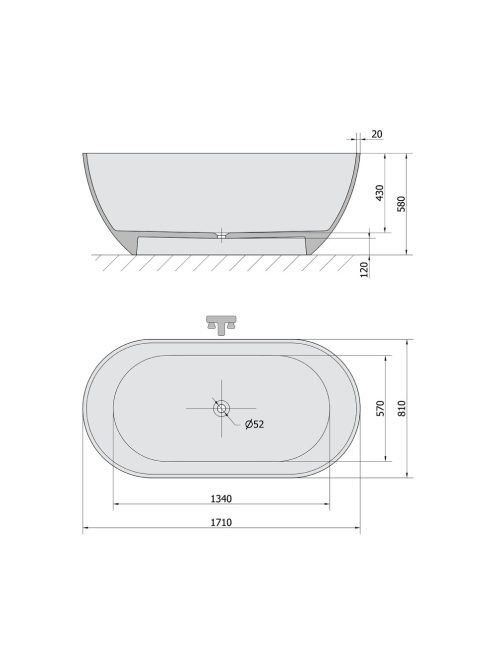 Polysan Reduta szabadonálló öntött márvány kád 171x81 cm, fePolysan Reduta szabadonálló öntött márvány kád 171x81 cm, fe
