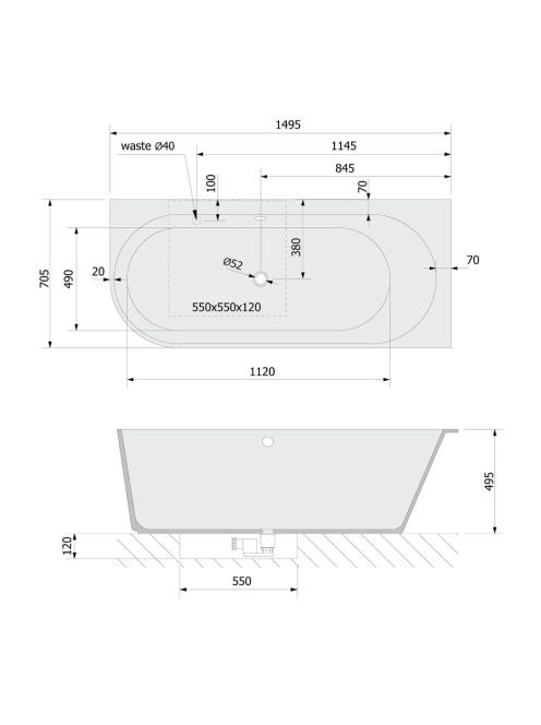Polysan Sussi R jobbos szabadon álló kád 150x70x50 cm, fehér