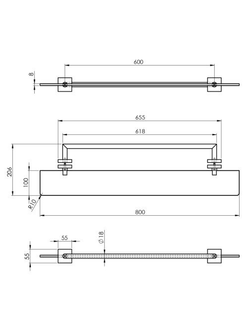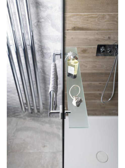 Polysan X-Square üvegpolc törölközőtartóval üvegre 80 cm, kr