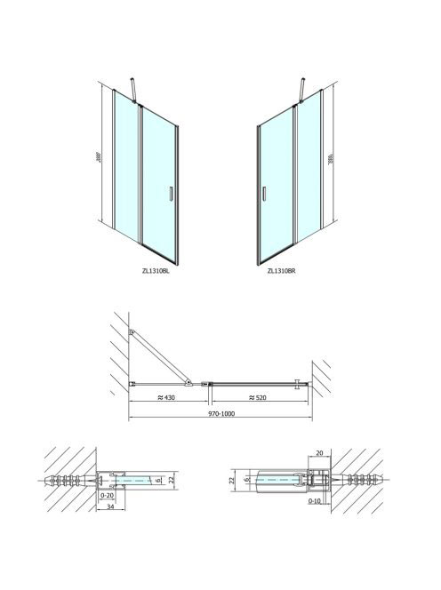 Polysan Zoom Line Black zuhanyajtó 100x200 cm transzparent ü